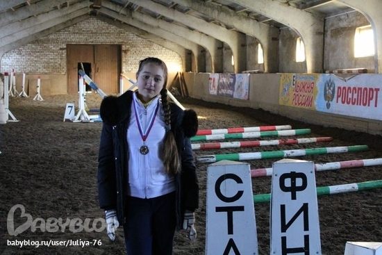 С П О Р ТОчень хочется поделиться со всеми нашей маленькой семейной радостью. В прошлые выходные у нашей Дарьи состоялись первые соревнования, пусть они конечно были и не вселенского масштаба, а клубные, но все же!!!!!!!!!!!!!!!!! Дашуля заняла второе место!!!!!!!!! А занимается она у нас конным спортом, да и не так уж долго (раньше просто ездили на ипподром кататься, а теперь прыгать учится, выездке) с лета этого года. (очень, очень много фото)