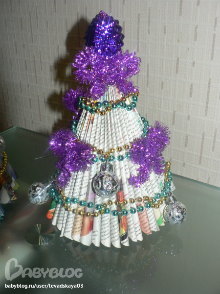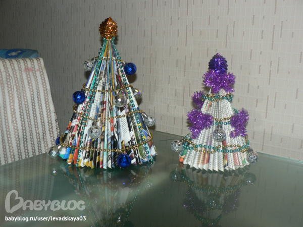 Увлечения, хоббиВот - в школе проходит конкурс на лучшую оригинальную ЕЛКУ. У нас с Полинкой получились вот такие (из журналов)
