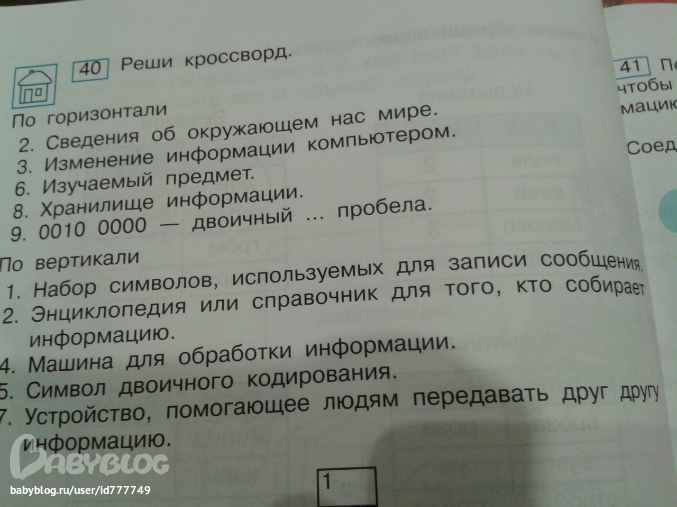 Домашнее заданиеВыручайте!!! Надо разгадать кроссворд по информатике 2й класс
