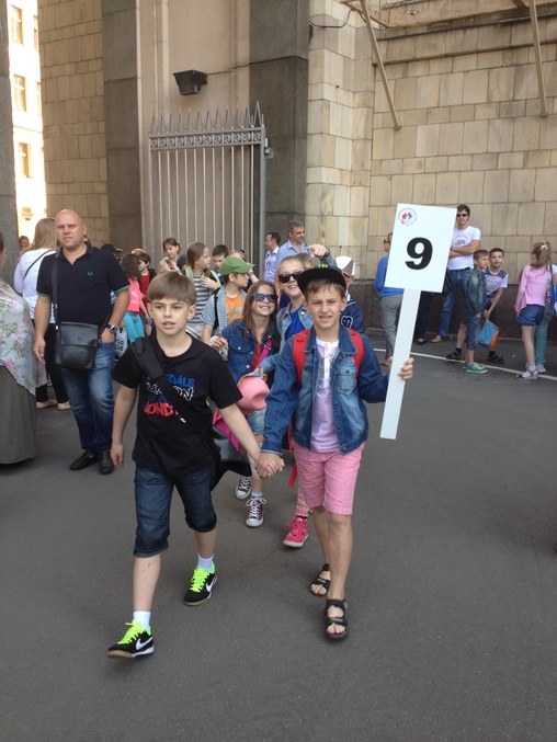 Мы в 9) мой несет табличку с номером отряда)))