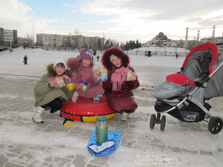 Позвонили папе, чтобы он привез коньки, и еще и на коньках покатались)