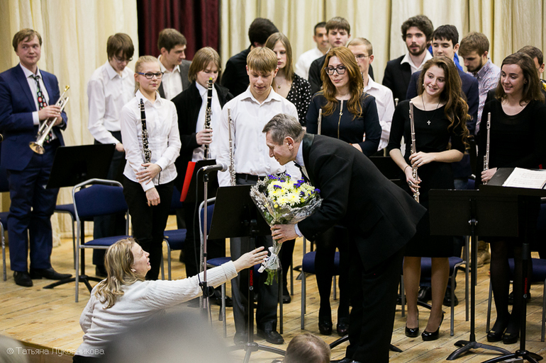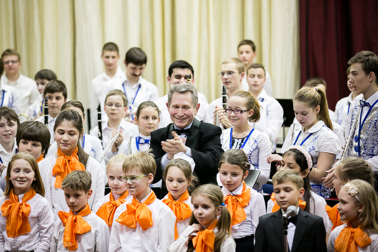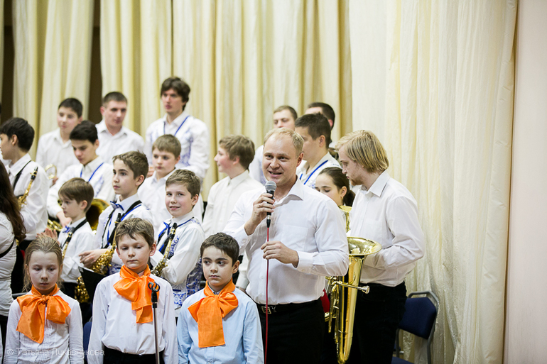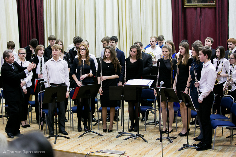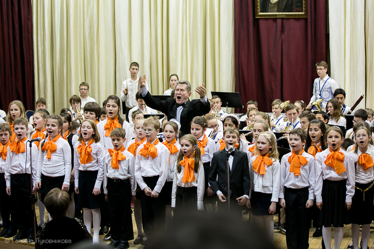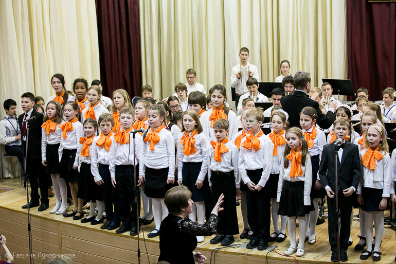 И вот сегодня был концерт в честь 23 февраля, на котором выступало четыре состава оркестров школы - младший, старший, концертный и оркестр выпускников и еще хор под аккомпанемент концертного оркестра))) А еще на концерте был внук Табакова, в честь которого названа школа.