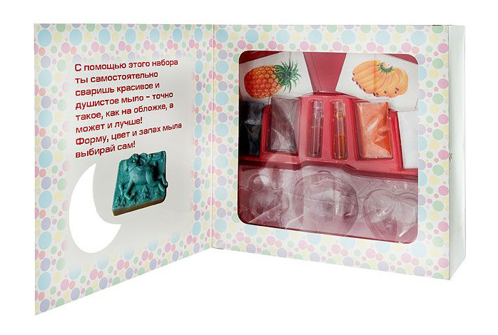 Купили этот набор в подарок на день рождения подружке дочки. Очень долго выбирали, пересмотрели кучу творческих наборов, но выбор все таки сделали в пользу "Сделай сам мыло"- нам понравилась компактная подарочная упаковка, хотя по составу мыловаренные наборы мало чем отличаются друг от друга.