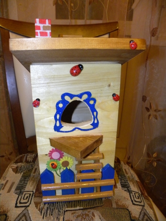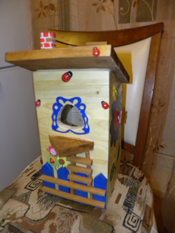 Увлечения, хоббиА мы вот такой скворечник забабахали дома:) муж сам распиливал доски, все сколачивал, я мелкие детальки лобзиком ковыряла. все раскрасили акрилом .