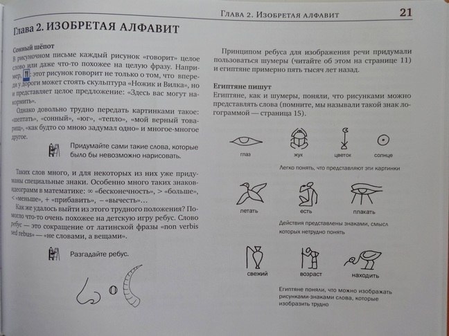 А для того, чтобы прочувствовать процесс буквотворчества целиком автор предлагает составить собственный алфавит, кодовый язык, зашифровать письмо, разгадать множество языковых загадок.