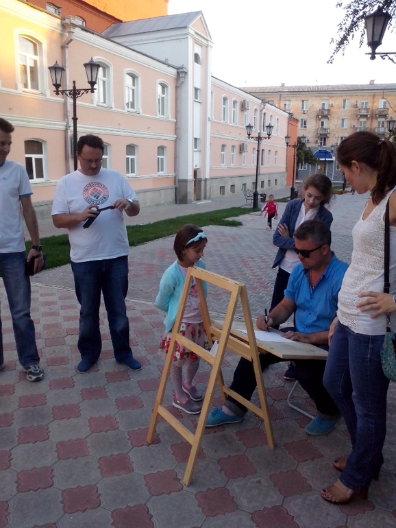 Семейный отдыхУ нас в городе проходит "Городская Художественная Дуэль", приглашаются все желающие, участвую не профессионалы. Рисуют разными способами и материалами. Приятно посмотреть. места выбирают красивые. Нас тоже пригласили как-то и мы влились в это движение. Теперь посещаем и всех приглашаем. Все подробности на Фэйсбуке.