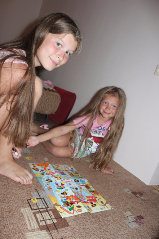 Обалдеть,какие волосы длинные и красивые!)А у младшей без кондиционера не путаются,хорошо расчесываются?