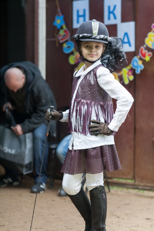 На выступлении на пони можно было быть в маскарадном костюме. Ира была маленькой разбойницей (у меня больше ничего толкового не придумалось).