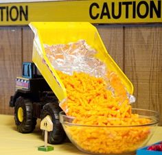 И по закускам тоже крутые есть:) Если мальчишки будут, то может оценят "яйца лягушки" или "яйца динозавра", змеи.. И прям оч понравилась идея с экскаватором для сервировки: