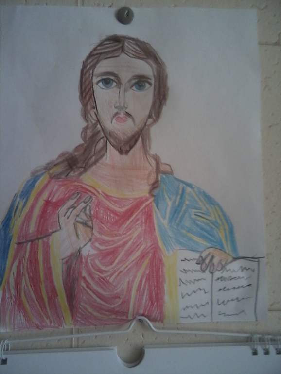 Все хорошо и сомнений у меня не было, до тех пор пока не приехала в гости моя двоюродная сестра. Она то и вселила в меня сомнения когда узнала что школа наша с физико-математическим уклоном. дело в том что мой ребенок очень любит рисовать (при этом мы только в этом году пойдем в художку, до этого он никогда ни где не занимался, так изредка на развивашки ходили, и сама я сним целеноправленно рисование мне занималась). хотя пожалуй сказать что он любит рисовать это ничего не сказать. рисует, лепит, вырезает он практически все время что бодорствует )))) рисует довольно хорошо с учетом того что никогда нигде не учился этому. Вот например бабушке нарисовал икону глядя на висящую на стене у нее