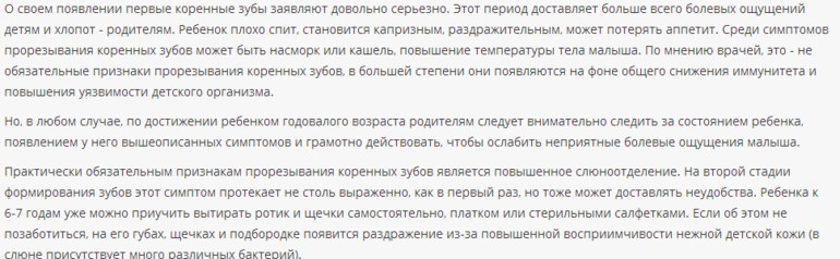 просто родители не связывают это с зубами, а с глистами, орви, и т.д. слюни они уже глотают и не так видно. но в статье написано дать ребенку с собой в детский сад платочек вытирать слюни и сопли ))))))))