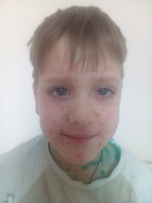 Бедняга, это мой страшный сон.... сложная форма у него... пусть не чешет прыщики иначе следы останутся... скорейшего выздоровления!