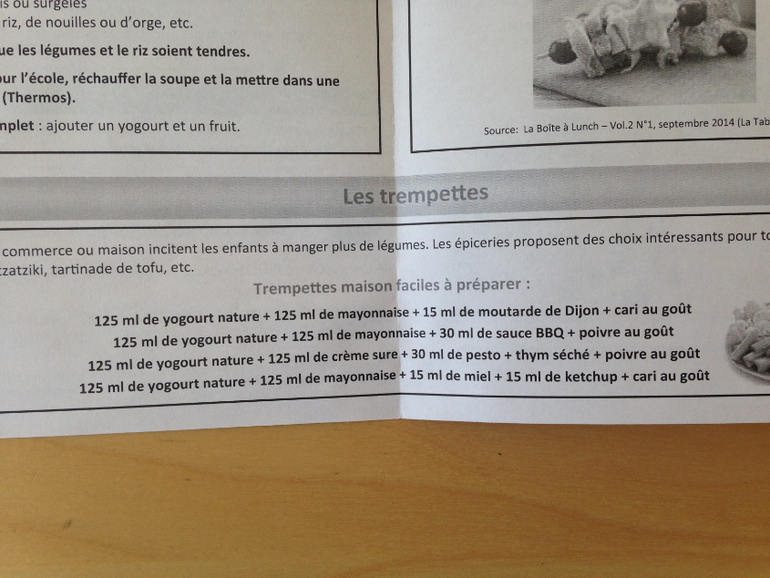 Помимо этого нам частенько дают дополнительные листочки с идеями здорового питания.