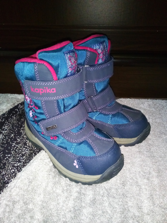У нас вот такие были ботинки.Тихий ужас. Нога вечно холодная была, так и не доходила дочь сезон, купила ей валенки Филипок. Хотя до этого всегда носили аналогичную обувь Jumbo Bear. Думала, в Капике также тепло будет(((