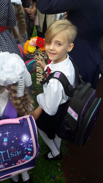 Какая красавица-первоклашка))) прическа у вас супер модная)) ранцы смотрю у всех большие. Первый год все равно мне таскать. Потом посмотрим...