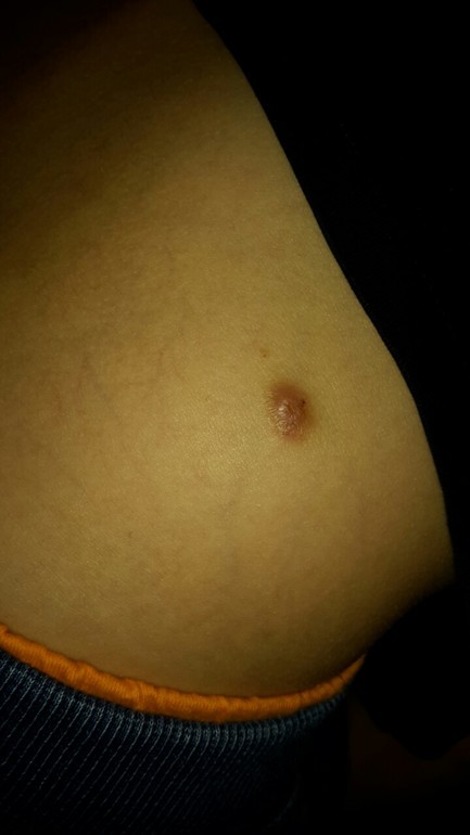 Да-да! Именно типа синюшного цвета вокруг. И уплотнение (как вулканчик). Размер где-то 5-7 мм. Небольшие.