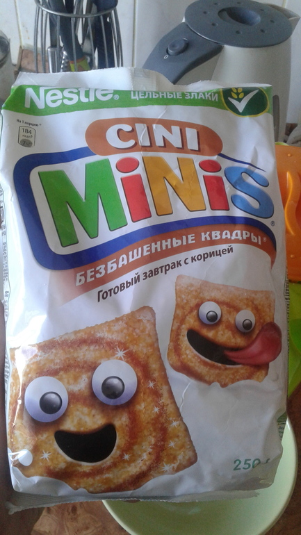 КаникулыРешили на каникулах, для разнообразия, побаловаться готовым завтраком с корицей.