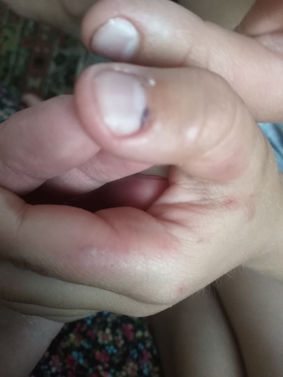 ЗдоровьеСкажите, что это? Не зудит, не болит, касаться больно. Началось с красоты, сейчас и на второй руке. Что может быть? Ребёнку 6 лет, ранее аллергией не страдал.