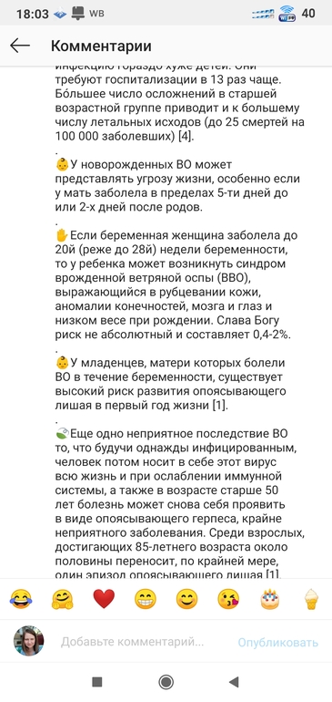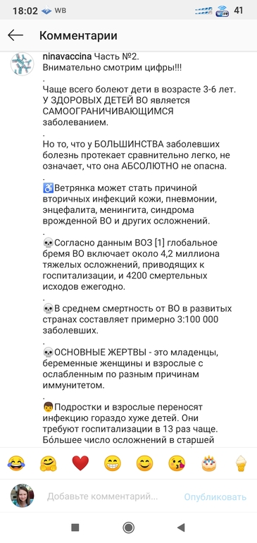 Я, к слову, заразилась от детей) и в 32 перенесла ветрянку. Ну, температура и прыщи, не страшно. Риновирус я перенесла тяжелее. Согласна, что бывают тяжелые случаи. Про оп.лишай в курсе. Просто часто читаю про прививку именно от ветрянки, и хочется знать чем же так она опасна. У моих знакомых переболели практически все дети. Про то, что есть прививка я узнала на форуме. И пока удивлена, если честно. Интересна мотивация. Вашу я поняла.