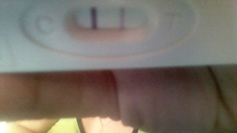 сегодня сделала тест и вот она.... моя заветная (пусть не такая яркая, но хорошо заметная) 2 полосочка))) правда фото не качественное, на самом деле она ярче