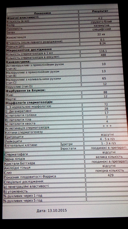 Я вам по-моему сегодня отвечала? Лейкоциты повышены, агглютинация. Это может указывать на воспаление. От этого же может и подвижность страдать. Остальное все в норме, насколько я смогла понять))