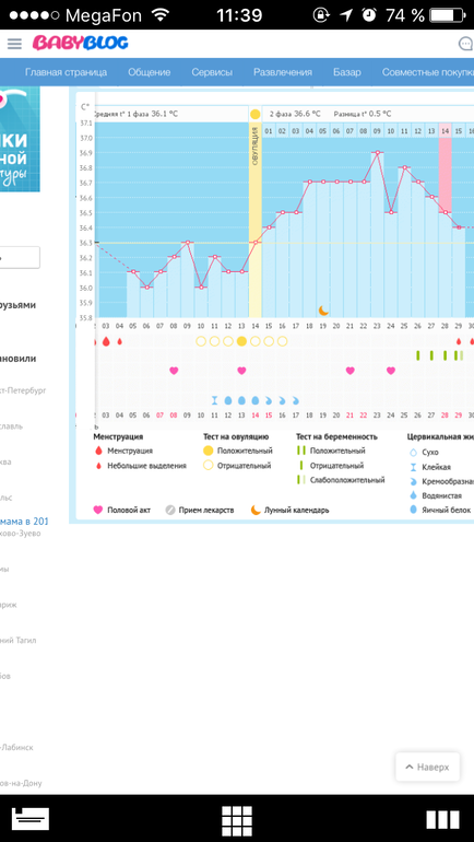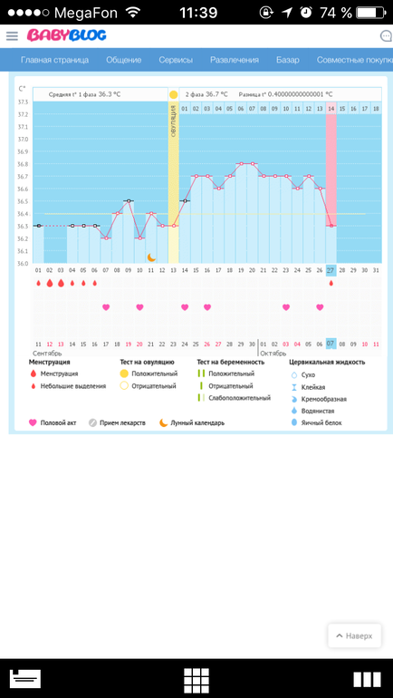 среднюю темпу график сам посчитает. на фазы тоже разделит. но примерно О будет на 13-15 день. значит до О низкая темпа, потом примерно на 0,4 выше. может резким скачком, а может ступенечками. на графике лучше видно. когда темпа поднялась выше первой фазы-значит началась вторая))