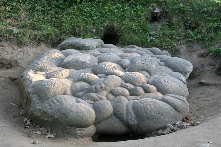 На набережной будет место, где родник стекает в Москву -реку. Там нужно по грунтовке начать подниматься вверх. Проходите два пруда. Продолжаете подниматься, Там чуть выше начинается дорожка из деревянного настила..Идете по ней прямо вверх. Лучше идти по правой стороне, так удобнее. Совсем скоро увидите мостик и два бьющих родника. Если хотите набрать воды то набирать надо из правого источника ( там труба более выведенная), там Живая вода. Там есть надпись , что пить нельзя, но пьют все и никаких проблем. Чуть выше этих источников, буквально через пару метров увидите камень похоий на черепашку- вот он вам и нужен
