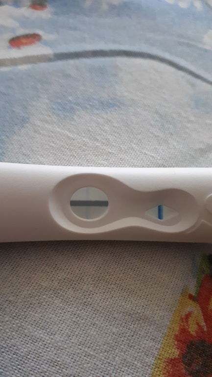 Фрау тест на 1 минуте показал еле видную, слабую полоску, которую увидела не только я, но и муж