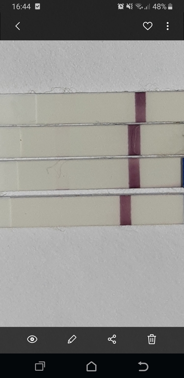 Нет , нижний отрицательный совсем, даже на просвет на всех полоска есть , кроме нижнего. А верхний еле-еле видно 👀.