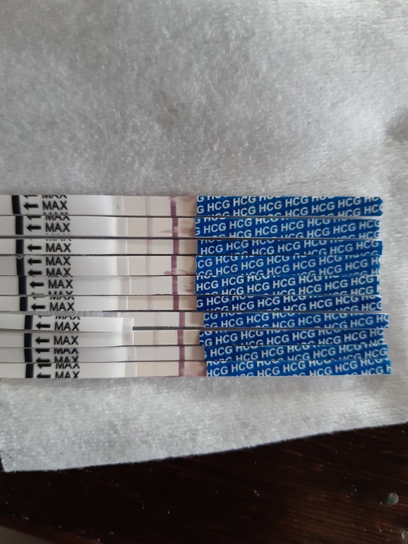 тесты с 15 дпо по 4 дз, два последние 5дз, хгч сдавала на 3 дз -67, но потом увидела что тесты бледнеют сдала на 5 дз хгч и -22....вот так недолго длилось мое счастье....3 года не получается и вот надежда была, и дюфастон пила и все равно не задержалось...моя ре думает что это из за кровотока в матке типо он не очень отличный, в остальном у нас с мужем все идеально...