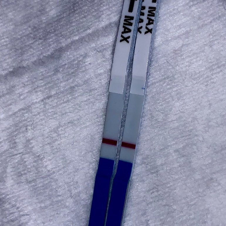 Завтра день Х. Решила сейчас вечером замочить тест. Вижу призрак призрака😂😂либо это моя фантазия. Извините за фото, не знаю, почему ватный диск такой🤦🏽♀️🤦🏽♀️🤦🏽♀️фото пришлось немного затемнить,тк через камеру не идеально все передаётся