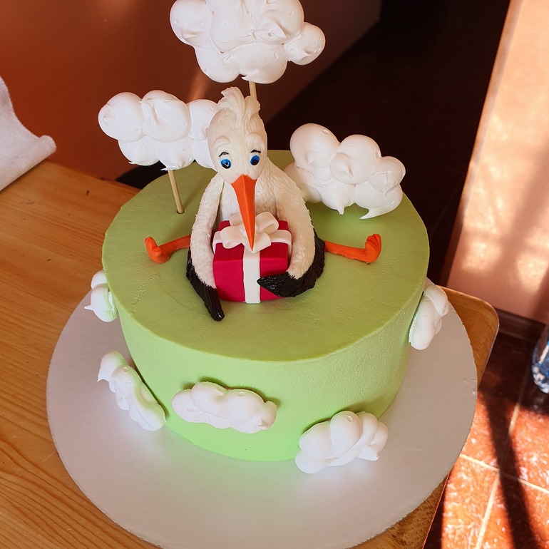 Итак, всем кто переживал, как же так я все это время обманывала мужа и не говорила, что беременна, потому что ждала нашу годовщину. Вчера первый раз сходила на УЗИ. Всё хорошо, сердце бьётся, поставили ровно 7 недель. А сегодня настал тот самый день. Ничего оригинальнее торта не придумала к сожалению. С мужем договорились, что с меня праздничный завтрак, а с него ужин. В самом конце трапезы объясняю ему, что это были самые тяжёлые недели ожидания в моей жизни и достаю торт с аистом. Он на него смотрел с минуту наверное, а потом поднимает голову и говорит - И когда это мы так умудрились? Стала рассказывать, что ещё в позапрошлом цикле и что я как могла так скрывала чтобы дотянуть до 9 мая. Ну тут слезы, обнимашки... А ещё через пол часа он осознал, что прошло уже почти 2 месяца, стал судорожно ходить в комнате из угла в угол, говорить что -то про ипотеку, продажу квартиры, новую работу, при этом ходил и сам с собой бубнил туда сюда, меня даже не слышал. Потом резко помчался в церковь (сказал, что весь январь в церковь ходил и просил) и за цветами. Притащил огромнейший букет)) Сказала ему, что сегодня пусть хорошенько напьется, потому что с завтрашнего дня начнутся серьёзные разговоры😆 Так что всё хорошо, ни единой обиды)