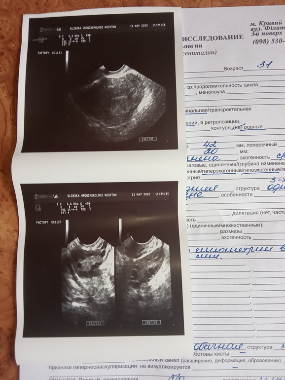 Планируем ещё одного...Со вторым было ксерареао 5 лет назад,пол года назад ВБ,прошлый цикл первый планирующий,вот с него и начались проблемы....был очень длинный 48 д.,но овуляция была.На УЗИ аденомиозу значения не придали,сказала,что эндометрий хороший,матка в норме,вот только яичники....Левый увеличен и много фоликов.Сейчас он и беспокоит, потягивает,кроме этого симптомов нет...