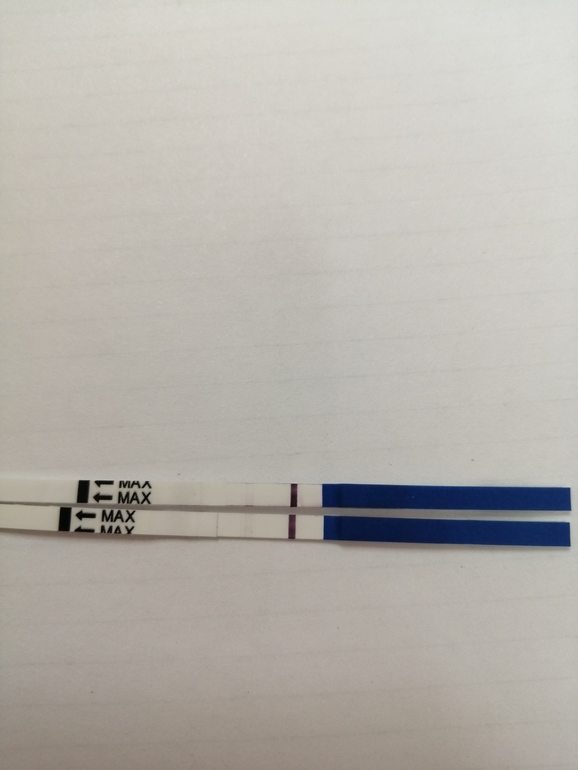 это фемитест. Разное время, разные упаковки. До предполагаемых мес 4дня. Как думаете реагент?