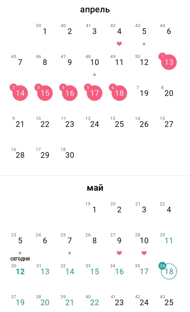 Что мы имеем?🙈 Ооооочень длинный и не постоянный цикл🤦🏼♀️ 40-50-60 дней🙈 особенности организма🤷🏼♀️ овуляция происходит, но её надо ловить...Первый раз так и получилось, случайно поймала тестом, и так случилось, что и ПА был за день, и всё сошлось 🤗 После родов стало ооочень чувствительна к овуляции, и надеюсь, что на этот раз получится её почувствовать и поймать 🤗 даст Бог, всё получится 🤗 Календарь (ниже, показывает так), нооо, всё равно закупила тесты на овуляцию, буду пробовать её поймать...