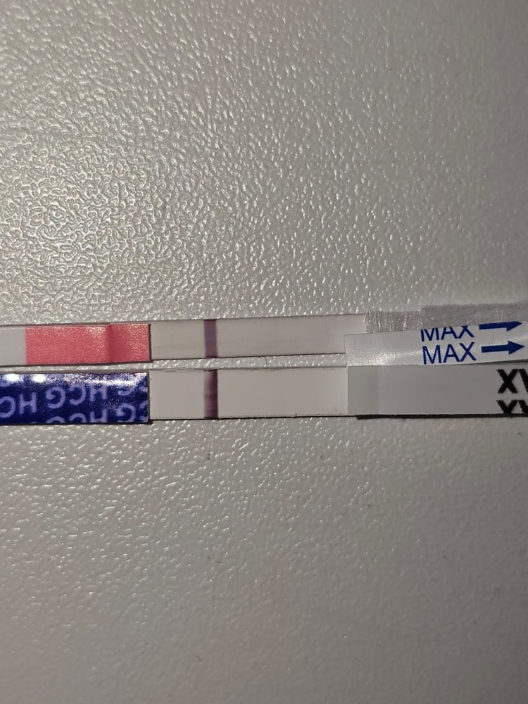 А 25 июня сделала сразу 2 теста (разные марки) тестов на беременность(чувствительность 10ml)— на двух появилась очень слабая вторая полоска. Все тесты были сделаны одновременно. Фото прикрепляю.