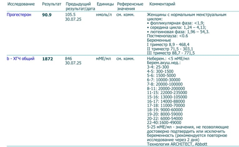16ДПО 846 мМЕ/мл и прогестерон 105.5 нмоль/л