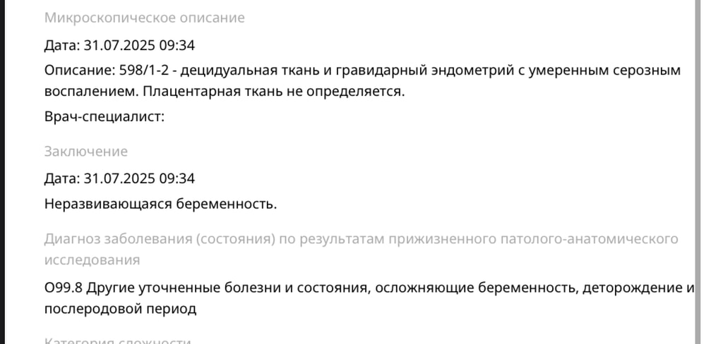 Обследования, узи, анализыпришла гистология. Была чистка 18 июля, беременность первая.