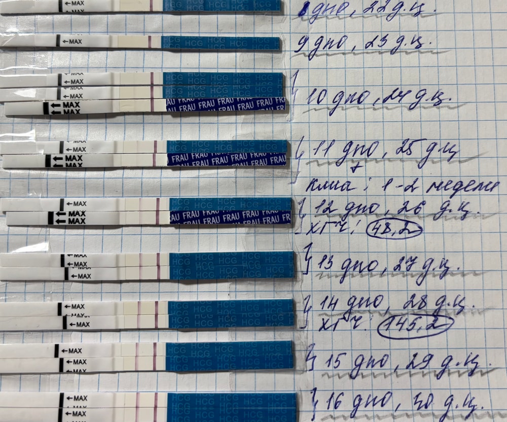 Хочу поболтатьМама чеки закончились, соответственно - тестомания тоже😅 Есть еще парочка «Ев», но они какие-то совсем другие и полоски там вообще неяркие... Или мне уже так кажется из-за замыленности глаз. Знаю, что динамику по тестам не смотрят, но до узи еще почти неделя, потихоньку схожу с ума🙈