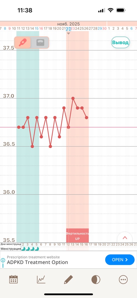 ОвуляцияДевушки , начала строить свой график бт. Помогите разобраться новичку , все неплохо пока ? Приложение eggys. Почему-то овуляцию не рисует