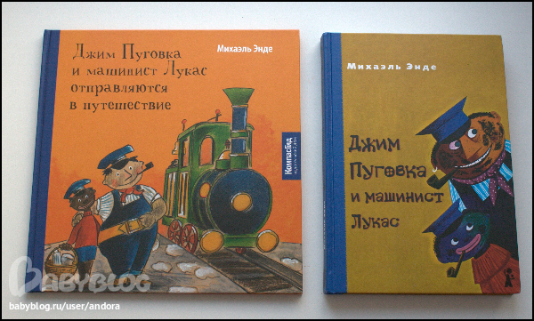 "Джим Пуговка и машинист Лукас отправляются в путешествие" - самая первая книга из серии о Пуговке (всего 7 книг), адаптированной для малышей. Прекрасные, невероятно красивые иллюстрации и все очень доступно написано.
