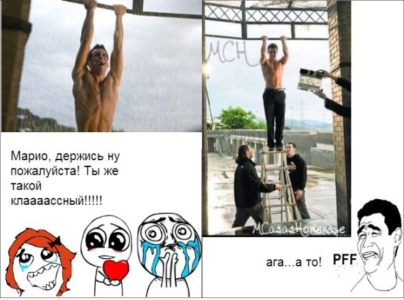 О, боже! Но ведь это кино. Не вижу ничего шоирующего в таком трюке. Потому что тело свое он явно создал в спортзале и за это уже ему респект. А убольшинства девушек тут на ББ мужья сами и на лесенку эту не влезут, я уж про тело молчу))))))))))))))