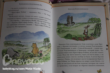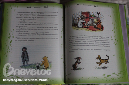 Давно я искала книгу про дочкиного любимого Винни-Пуха. А то мультики засматриваем, а на ночь почитать про любимого медведя и нечего… Понятное дело, такие книг сейчас на каждом углу практически. Но большинство из них с иллюстрациями из серии нашего отечественного Пуха, которого я не очень люблю (да простят меня поклонники отечественной мультипликации), да и Влада не особо воспринимает.