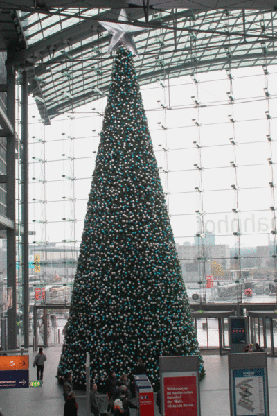 Ёлка такАя огромная, даже не могу представить каккая она в высоту. И медведь тоже огромный, похоже в Берлине любят всё большое ) Дед Мороз прикольный такой