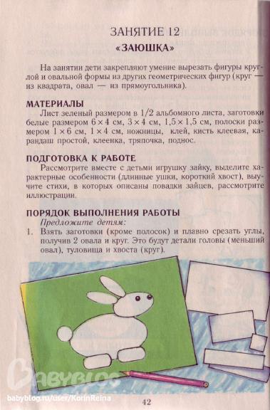 Советую прочитать!Очень мне нравится эта книга. Мы частенько именно по ней и делаем аппликации. Я как-то не всегда понимаю с какого бока к какому заданию подойти, а там все прекрасно написано и расписанно. И иллюстрации цветные ко всем работам. Очень рекомендую.