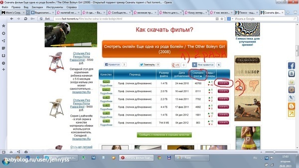 блин, плохо видно ((я качаю с фаст-торрента. вводишь название фильма - нажимаешь на картинкупотом ищешь самый популярный торрент - надимаешь кнопочку "скачать" - высвечивается окно куда скачивать торрент - всеего не обязательно сразу загружать на комп, можно просто хранить эти файлы с торрентами и когда надо их скачиватьхоть что-нибудь понятно? )))))))