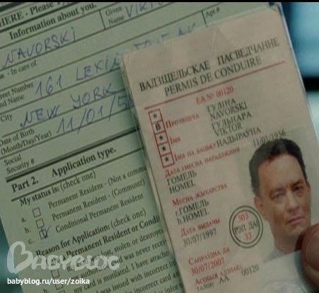 2. Водительские права Тома Хэнкса из фильма «Терминал» на имя Гулиной Гульнары. Еще и белорусского образца. Наверное, кто-то из диаспоры консультировал.