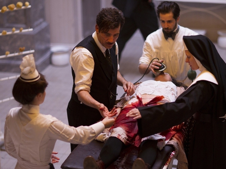 это драматический сериал о нью-йоркской больнице прошлого века. История этой больницы, становление ее. Первый рентген, первые операции кесарева, первый спинальный наркоз, своего рода зарождение "современной" медицины. Сюжет не самый новый, простоя снято все очень атмосферно. Карета скорой помощи, это такая повозка на лошадях. Лошади скачут, а смотришь на это и представляешь, как же там внутри трясет пациента с раздробленным бедром. Негров лечить не хотят, младенцев пытаются спасти от менингита кровопусканием, а сифилитичке приделывают новый нос. Как-то так.