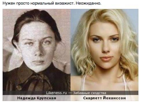 ради интереса вбила в яндекс "крупская в молодости". там и разные подбородки, и носы, и брови у нее))