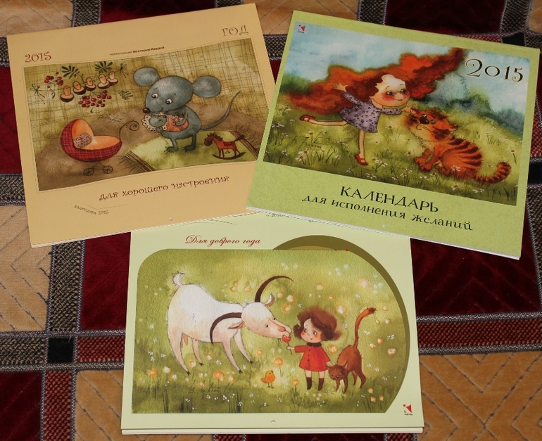 Моими приобретениями стали три настенных календаря на 2015 год, три блокнота и два набора открыток. Смотрим и наслаждаемся вместе со мной.